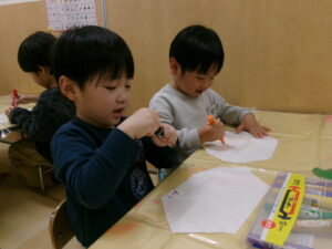 クラススナップ ホーム クラススナップ たんぽぽ組 凧あげしたよ! たんぽぽ組 イメージしたものを描いたり、興味を持ってきている文字を書いたりして、自分だけの凧を作りました。 天気が良い日に園庭に出て、凧あげを楽しみました。手を高くあげて思い切り走ると、風を受けて凧が上がり「見て~!」と嬉しそうな様子が見られました。たくさん走って体もポカポカになりました。 前の記事 お知らせ一覧 次の記事 カテゴリ カテゴリーを選択 クラススナップ トピックス アトム少年少女合唱団 給食 よくあるご質問 ちゅうりっぷ組 ばら組 もも組 たんぽぽ組 ひまわり組 ゆり組 今月の行事 各種ダウンロード アーカイブ 月を選択 2026年1月 (25) 2025年12月 (32) 2025年11月 (26) 2025年10月 (34) 2025年9月 (32) 2025年8月 (34) 2025年7月 (36) 2025年6月 (35) 2025年5月 (33) 2025年4月 (37) 2025年3月 (32) 2025年2月 (31) 2025年1月 (34) 2024年12月 (36) 2024年11月 (35) 2024年10月 (37) 2024年9月 (33) 2024年8月 (34) 2024年7月 (38) 2024年6月 (36) 2024年5月 (37) 2024年4月 (37) 2024年3月 (32) 2024年2月 (28) 2024年1月 (34) 2023年12月 (35) 2023年11月 (33) 2023年10月 (35) 2023年9月 (32) 2023年8月 (43) 2023年7月 (40) 2023年6月 (44) 2023年5月 (46) 2023年4月 (37) 2023年3月 (49) 2023年2月 (39) 2023年1月 (35) 2022年12月 (29) 2022年11月 (10) 2022年10月 (3) 2022年9月 (7) 2022年8月 (4) 2022年7月 (8) 2022年6月 (10) 2022年5月 (9) 2022年4月 (9) 2022年3月 (1) 2019年7月 (1) 2018年4月 (1) 2015年12月 (1) 2015年11月 (2) 2015年5月 (1)
