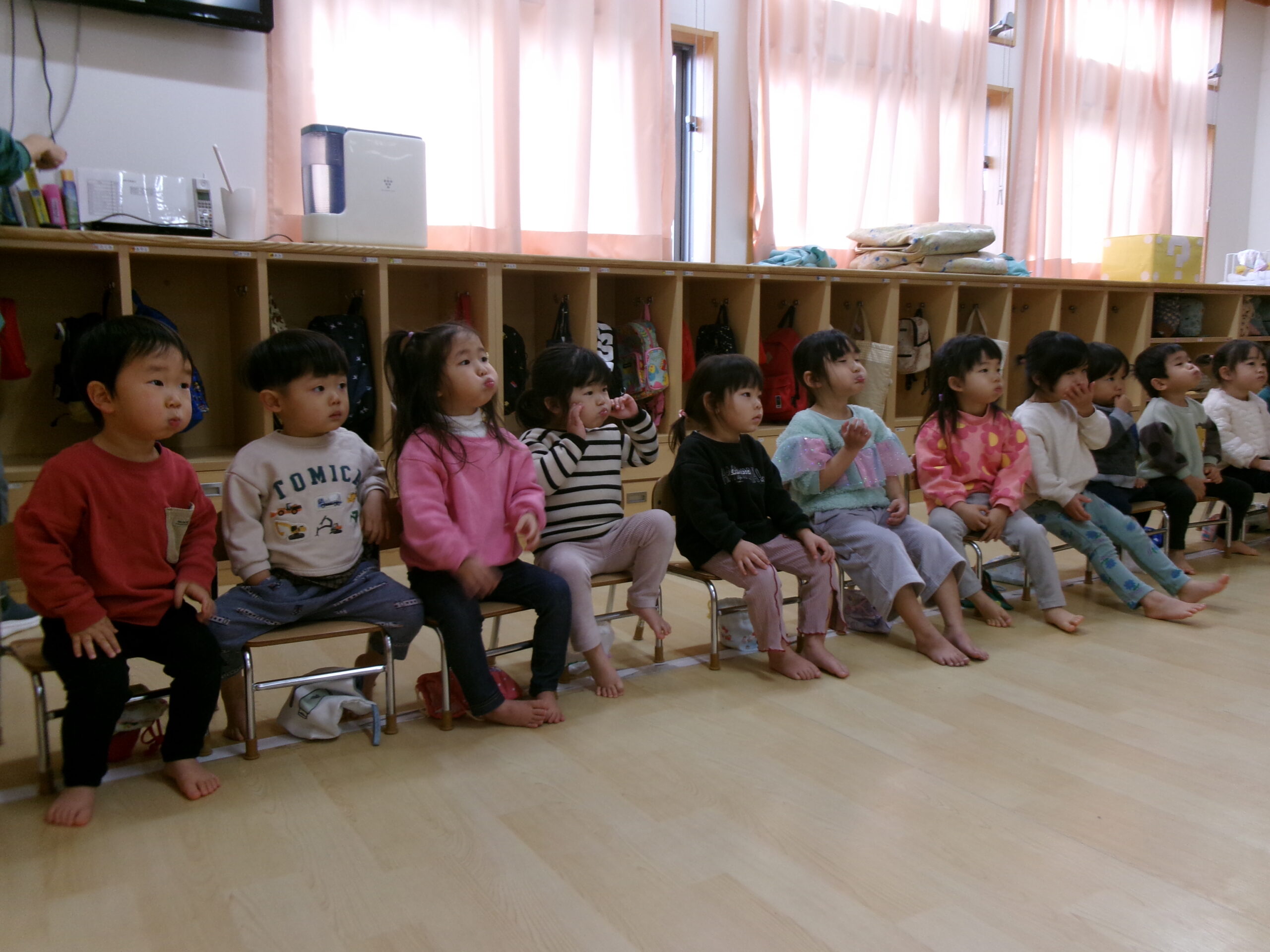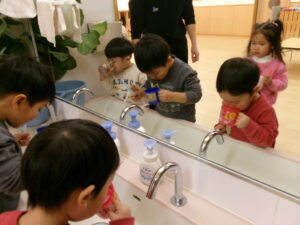 クラススナップ ホーム クラススナップ もも組 歯みがき指導(2歳児) もも組 もも組の2歳児さんは、初めて歯ブラシを使った歯みがき指導に参加しました。初めに大きく口を開けたり、ほっぺを膨らませたりする『お口の体操』をしてから、歯ブラシを持ちます。磨くときの歯ブラシの持ち方や「歯ブラシを口に入れたまま歩くのは絶対にダメ!」といった大切な約束をしっかりと教えてもらいました。歯科衛生士さんの口の動きや、言葉をよく聞いて歯を磨く子ども達。「こうかな?」という表情をしながら一生懸命みがいていました。 最後は順番にうがいをしてきれいな歯になりました。 前の記事 お知らせ一覧 次の記事 カテゴリ カテゴリーを選択 クラススナップ トピックス アトム少年少女合唱団 給食 よくあるご質問 ちゅうりっぷ組 ばら組 もも組 たんぽぽ組 ひまわり組 ゆり組 今月の行事 各種ダウンロード アーカイブ 月を選択 2026年2月 (19) 2026年1月 (33) 2025年12月 (32) 2025年11月 (26) 2025年10月 (34) 2025年9月 (32) 2025年8月 (34) 2025年7月 (36) 2025年6月 (35) 2025年5月 (33) 2025年4月 (37) 2025年3月 (32) 2025年2月 (31) 2025年1月 (34) 2024年12月 (36) 2024年11月 (35) 2024年10月 (37) 2024年9月 (33) 2024年8月 (34) 2024年7月 (38) 2024年6月 (36) 2024年5月 (37) 2024年4月 (37) 2024年3月 (32) 2024年2月 (28) 2024年1月 (34) 2023年12月 (35) 2023年11月 (33) 2023年10月 (35) 2023年9月 (32) 2023年8月 (43) 2023年7月 (40) 2023年6月 (44) 2023年5月 (46) 2023年4月 (37) 2023年3月 (49) 2023年2月 (39) 2023年1月 (35) 2022年12月 (29) 2022年11月 (10) 2022年10月 (3) 2022年9月 (7) 2022年8月 (4) 2022年7月 (8) 2022年6月 (10) 2022年5月 (9) 2022年4月 (9) 2022年3月 (1) 2019年7月 (1) 2018年4月 (1) 2015年12月 (1) 2015年11月 (2) 2015年5月 (1)