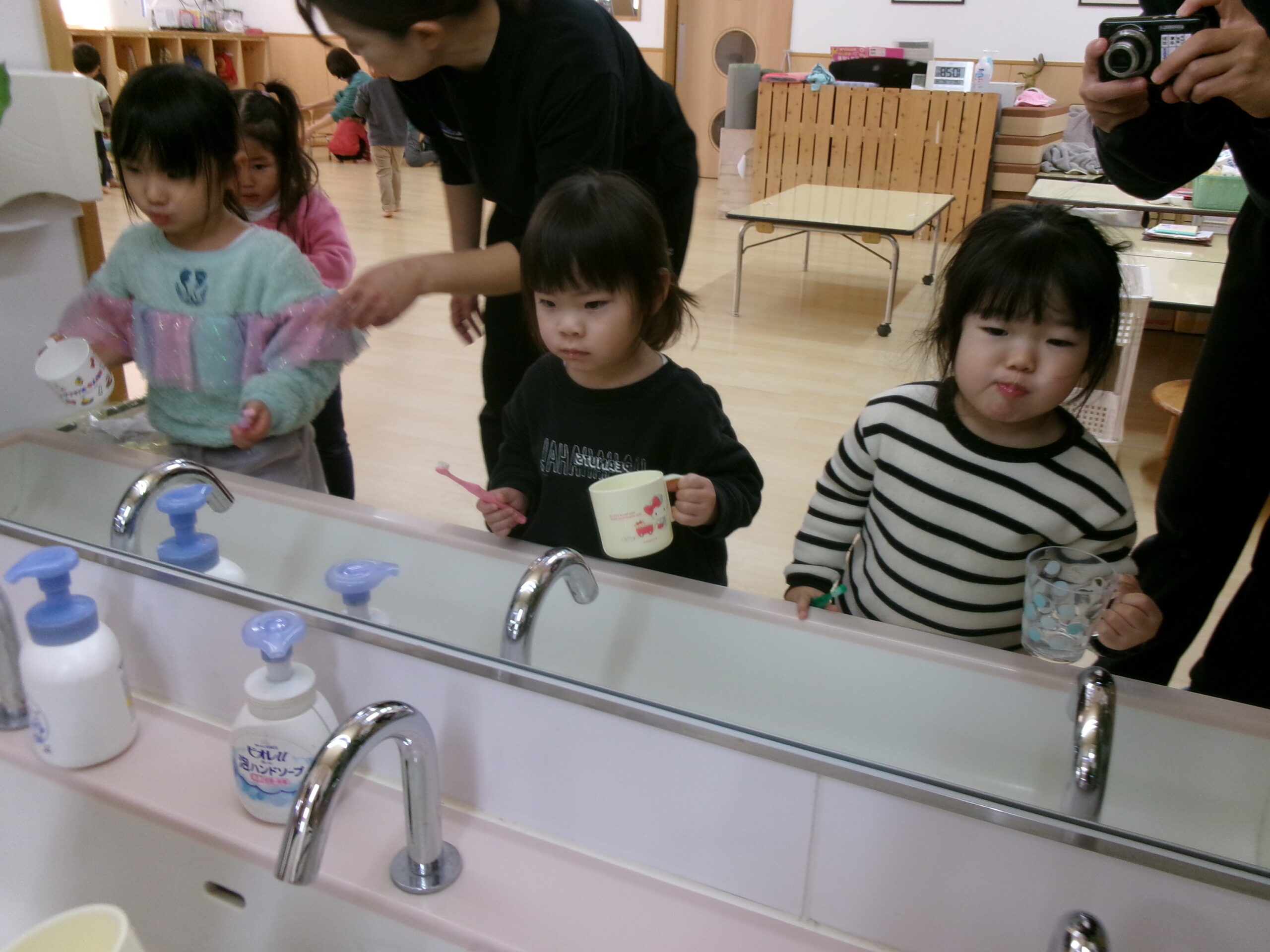 最後は順番にうがいをしてきれいな歯になりました。