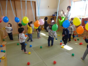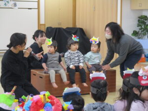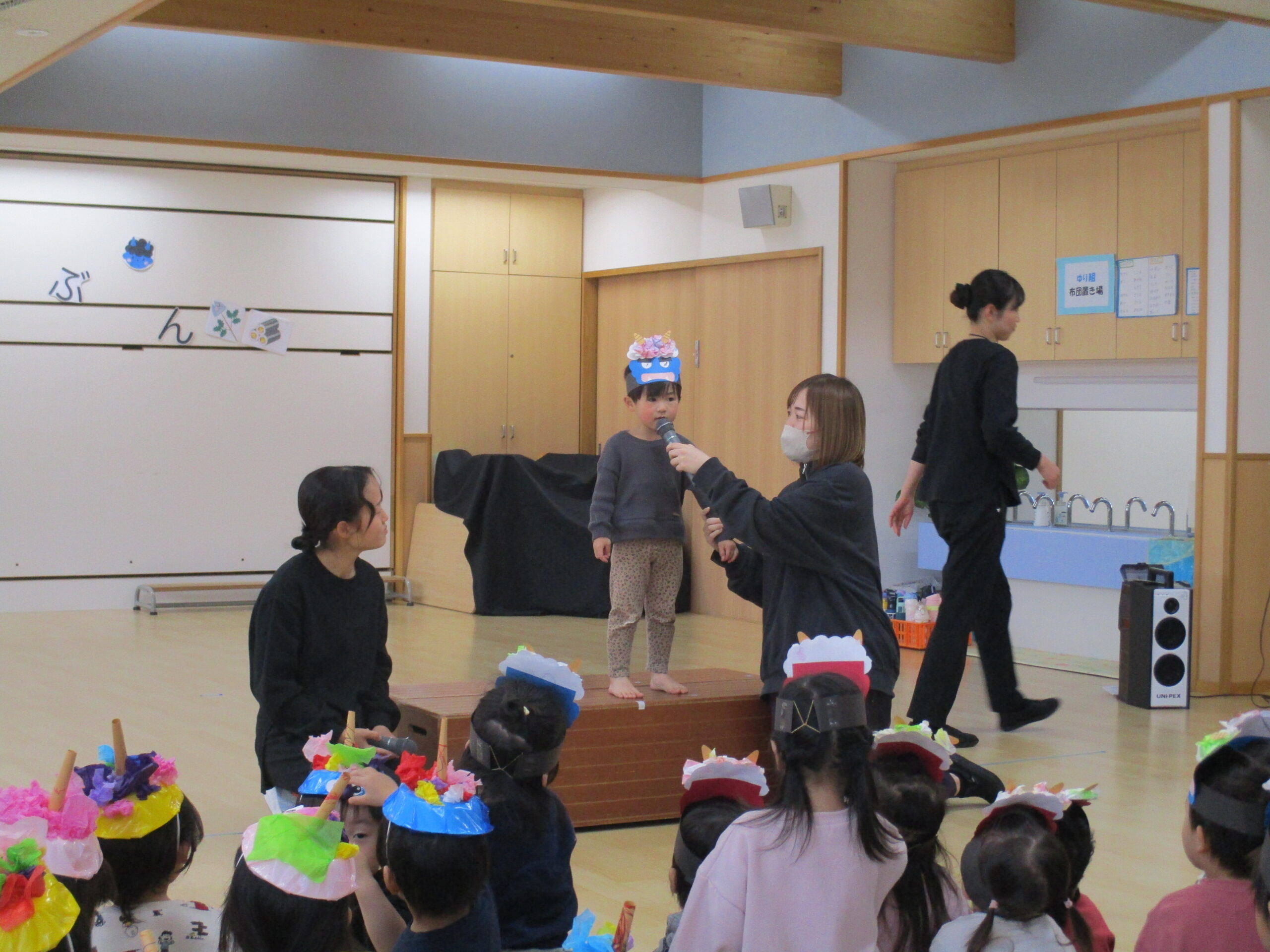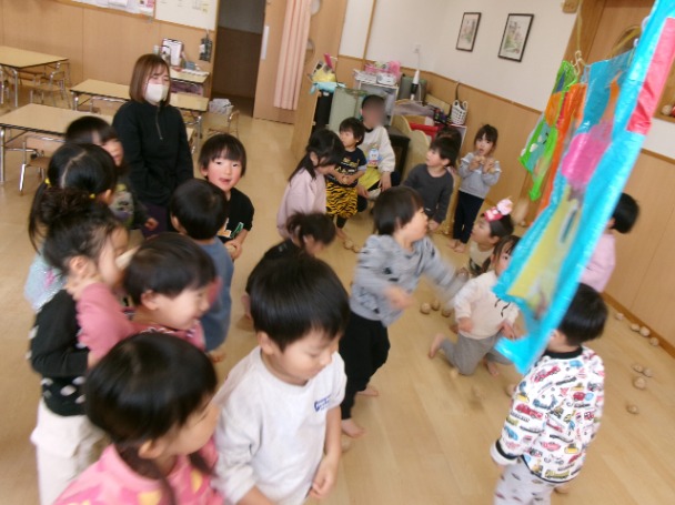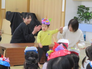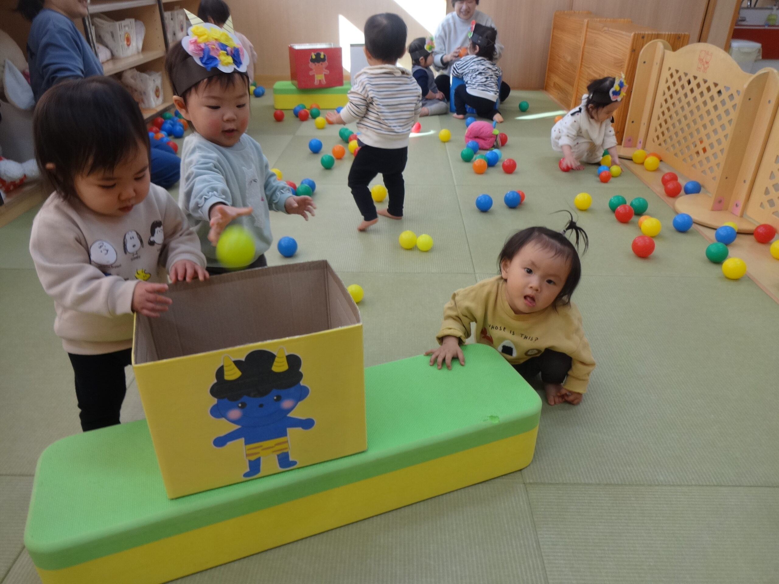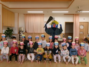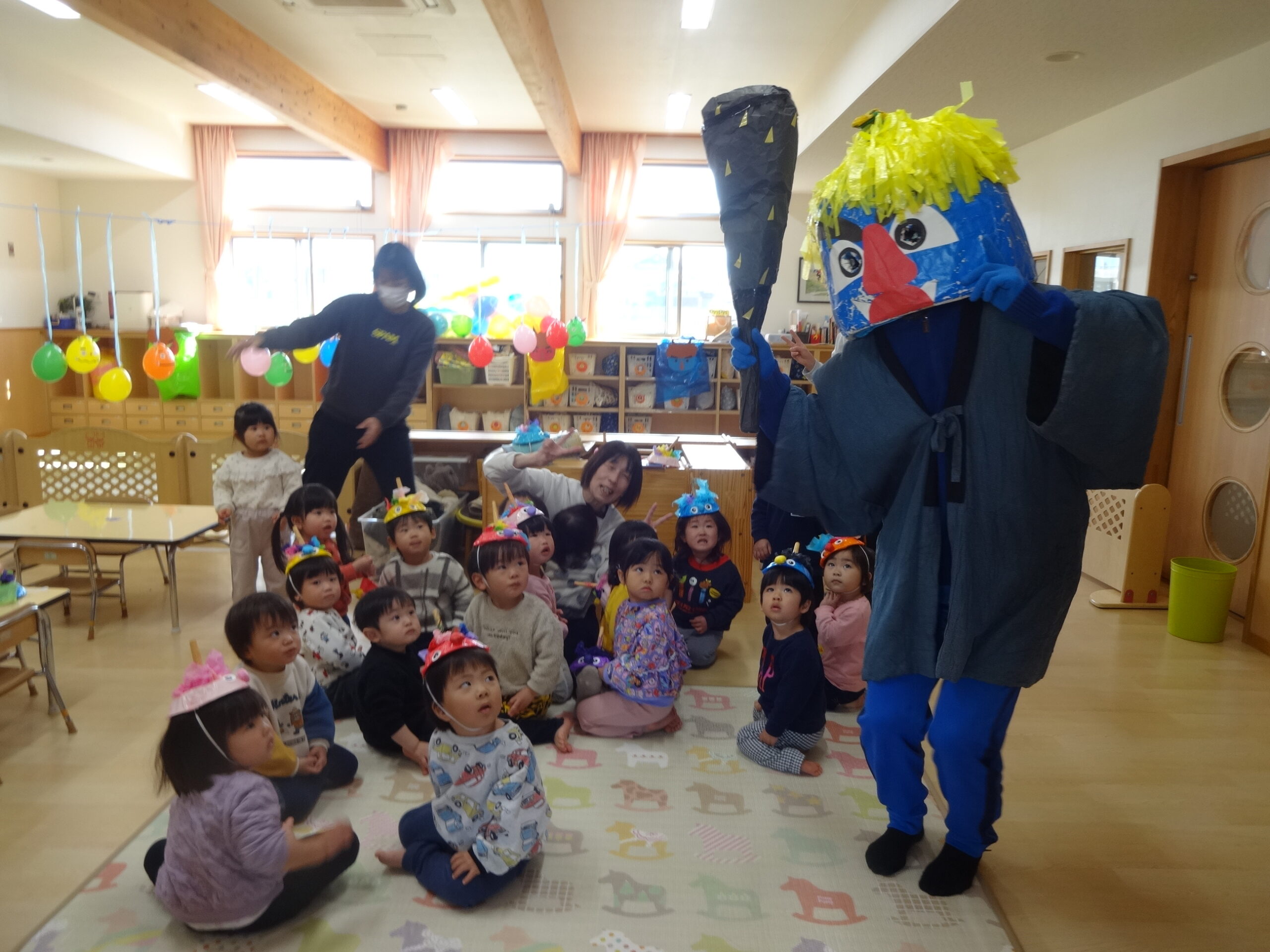 お知らせ ホーム トピックス 節分行事(3歳未満児) トピックス 節分行事(3歳未満児) 2026年2月3日[火曜日] 各年齢に合った手法で作った鬼のお面を付けて集まり、節分集会を楽しみました。まず、各クラスどんな風に作ったか、先生と一緒に前に出て素敵なお面の紹介をしました。 その後は、豆まきの歌を皆で歌ったり『おなかのなかにおにがいる』のパネルシアタ―を見たりしました。みんなの中にも鬼さんが入って来れないように、「おには~外!ふくは~内!」と元気いっぱい大きな声を出して豆まきの練習をしてみました。 お部屋に帰ってからは、鬼の的あてや玉入れ遊びをして元気に楽しみました。 前の記事 お知らせ一覧 次の記事 カテゴリ カテゴリーを選択 クラススナップ トピックス アトム少年少女合唱団 給食 よくあるご質問 ちゅうりっぷ組 ばら組 もも組 たんぽぽ組 ひまわり組 ゆり組 今月の行事 各種ダウンロード アーカイブ 月を選択 2026年2月 (19) 2026年1月 (33) 2025年12月 (32) 2025年11月 (26) 2025年10月 (34) 2025年9月 (32) 2025年8月 (34) 2025年7月 (36) 2025年6月 (35) 2025年5月 (33) 2025年4月 (37) 2025年3月 (32) 2025年2月 (31) 2025年1月 (34) 2024年12月 (36) 2024年11月 (35) 2024年10月 (37) 2024年9月 (33) 2024年8月 (34) 2024年7月 (38) 2024年6月 (36) 2024年5月 (37) 2024年4月 (37) 2024年3月 (32) 2024年2月 (28) 2024年1月 (34) 2023年12月 (35) 2023年11月 (33) 2023年10月 (35) 2023年9月 (32) 2023年8月 (43) 2023年7月 (40) 2023年6月 (44) 2023年5月 (46) 2023年4月 (37) 2023年3月 (49) 2023年2月 (39) 2023年1月 (35) 2022年12月 (29) 2022年11月 (10) 2022年10月 (3) 2022年9月 (7) 2022年8月 (4) 2022年7月 (8) 2022年6月 (10) 2022年5月 (9) 2022年4月 (9) 2022年3月 (1) 2019年7月 (1) 2018年4月 (1) 2015年12月 (1) 2015年11月 (2) 2015年5月 (1)
