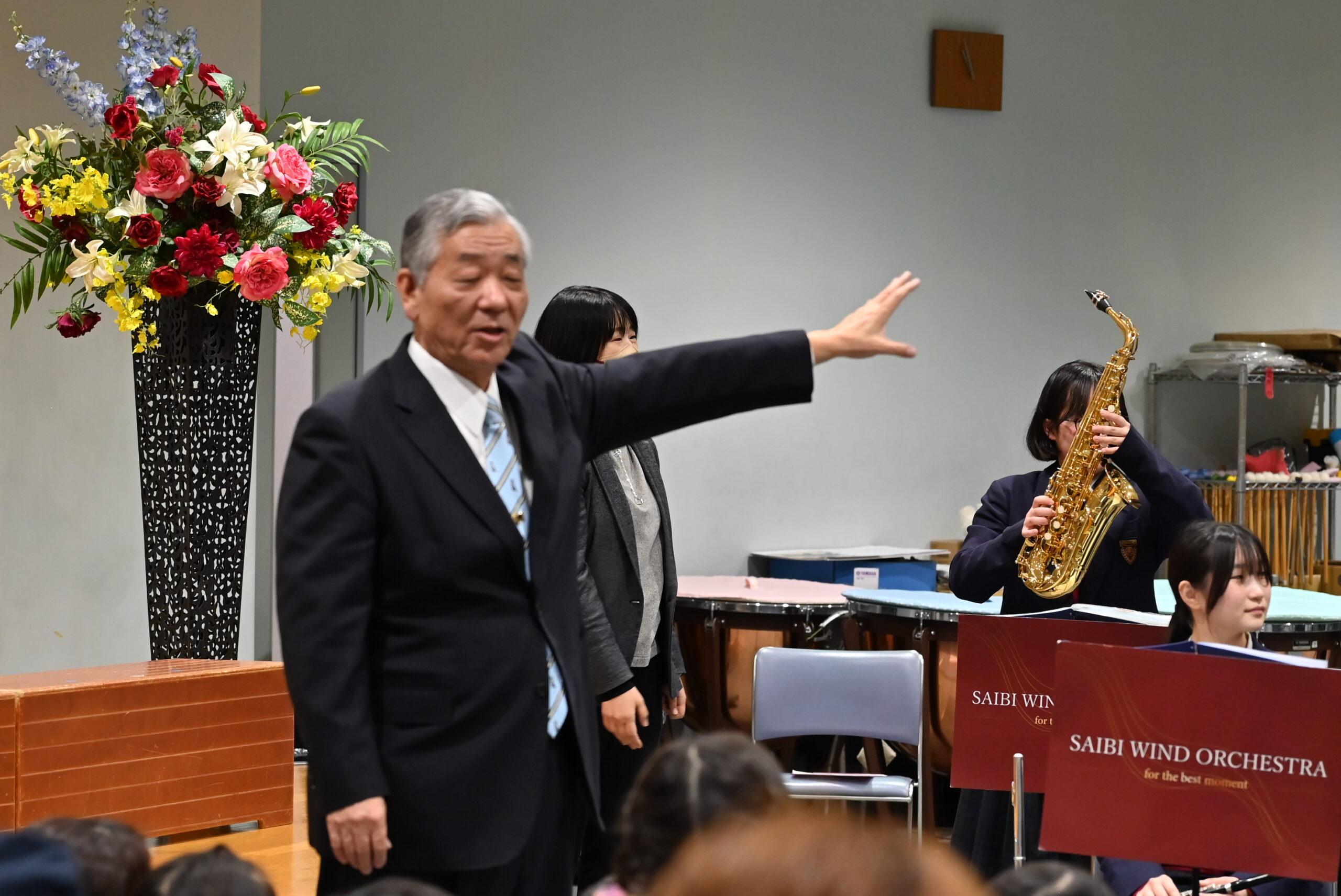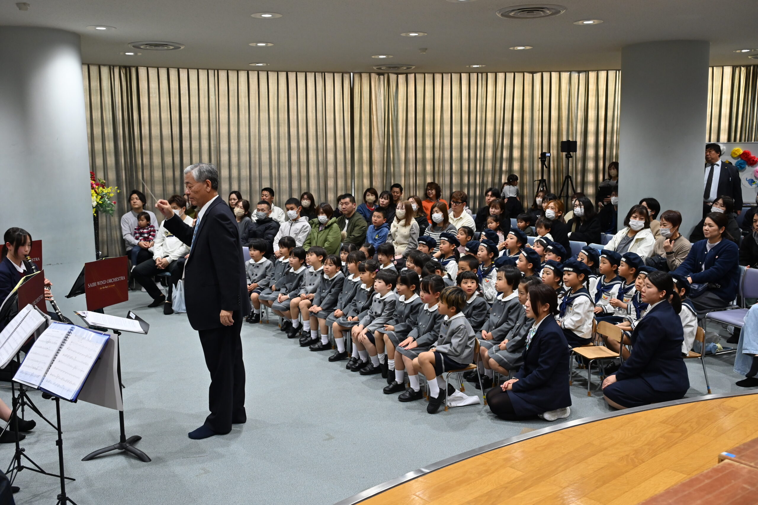 最後は吹奏楽部の演奏で「手のひらを太陽に」「うれしいひなまつり」をみんなで歌いました。保護者の方にもたくさんお越しいただき、素晴らしい音楽交流となりました。済美高校吹奏楽部関係者の皆様にも感謝いたします。