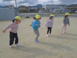 体操教室に参加し、園庭で縄跳びをした後は3チームに分かれてリレーをしました。2回戦して2回とも同じチームが勝ち、悔しくて泣く子の姿もありました。一年間たくさん笑い元気いっぱい体操教室に参加していたひまわり組さんでした!