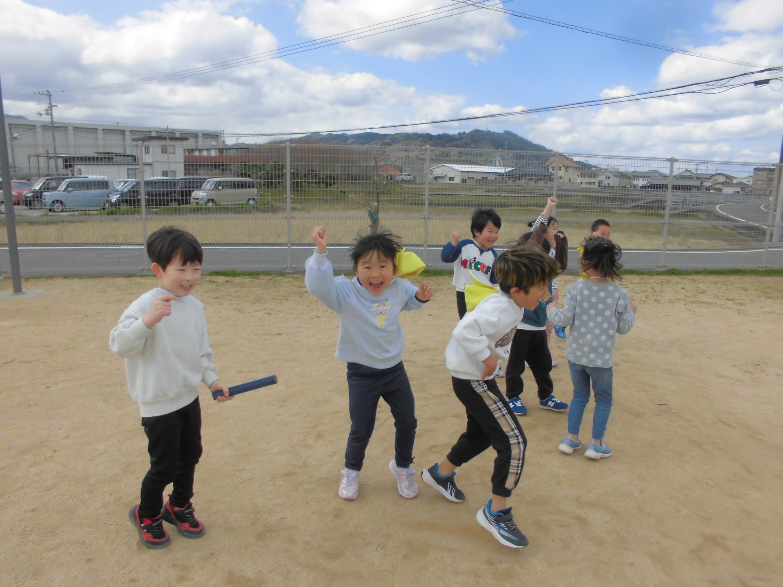 後日、悔しくて泣いていた子どもも一緒になって子ども達だけでリレーを楽しんでいました!その姿が頼もしく、とてもかわいらしかったです。
