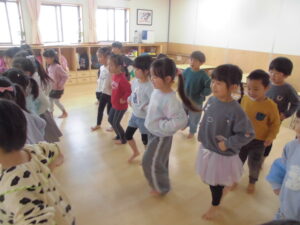 年長組になってから始まるフラダンスの時間も楽しみながら参加できるといいなと思います。