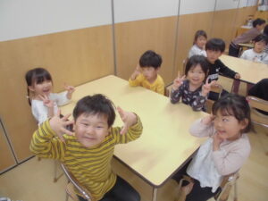 クラススナップ ホーム クラススナップ ひまわり組 ひまわり組になりました! ひまわり組 進級初日から元気いっぱいの子ども達。新しいチームのテーブルで記念写真を撮りました。カメラを向けるとかわいいポーズをとる子ども達。チーム名は海の生き物、「イルカ」「あざらし」「カニ」「ペンギン」です。これから、このチームで一緒に給食を食べたり制作活動を行ったり、当番活動をしたりしていきたいと思います。 前の記事 お知らせ一覧 カテゴリ カテゴリーを選択 クラススナップ トピックス アトム少年少女合唱団 給食 よくあるご質問 ちゅうりっぷ組 ばら組 もも組 たんぽぽ組 ひまわり組 ゆり組 今月の行事 各種ダウンロード アーカイブ 月を選択 2026年4月 (12) 2026年3月 (33) 2026年2月 (31) 2026年1月 (33) 2025年12月 (32) 2025年11月 (26) 2025年10月 (34) 2025年9月 (32) 2025年8月 (34) 2025年7月 (36) 2025年6月 (35) 2025年5月 (33) 2025年4月 (37) 2025年3月 (32) 2025年2月 (31) 2025年1月 (34) 2024年12月 (36) 2024年11月 (35) 2024年10月 (37) 2024年9月 (33) 2024年8月 (34) 2024年7月 (38) 2024年6月 (36) 2024年5月 (37) 2024年4月 (37) 2024年3月 (32) 2024年2月 (28) 2024年1月 (34) 2023年12月 (35) 2023年11月 (33) 2023年10月 (35) 2023年9月 (32) 2023年8月 (43) 2023年7月 (40) 2023年6月 (44) 2023年5月 (46) 2023年4月 (37) 2023年3月 (49) 2023年2月 (39) 2023年1月 (35) 2022年12月 (29) 2022年11月 (10) 2022年10月 (3) 2022年9月 (7) 2022年8月 (4) 2022年7月 (8) 2022年6月 (10) 2022年5月 (9) 2022年4月 (9) 2022年3月 (1) 2019年7月 (1) 2018年4月 (1) 2015年12月 (1) 2015年11月 (2) 2015年5月 (1)