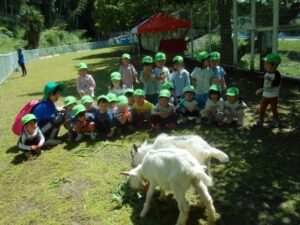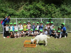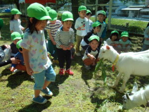 バスに乗って天山保育園に行き、ヤギの赤ちゃんに会ってきました。