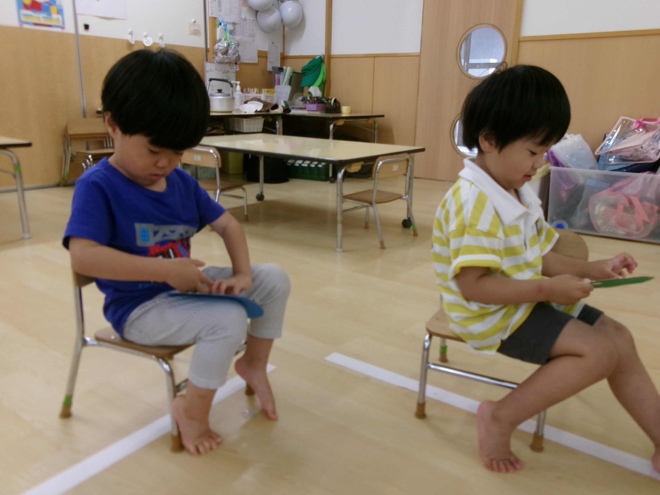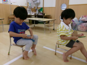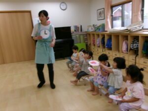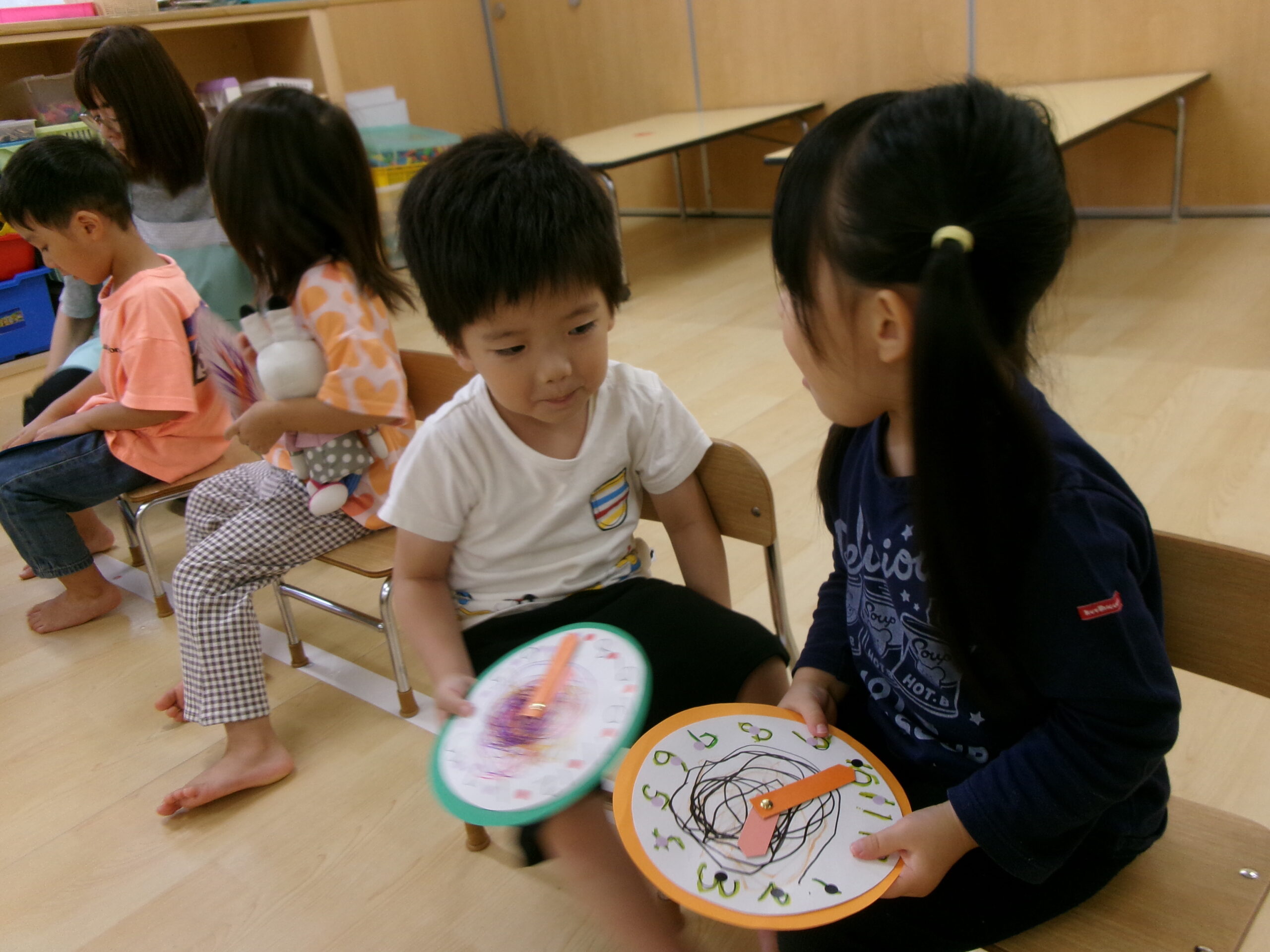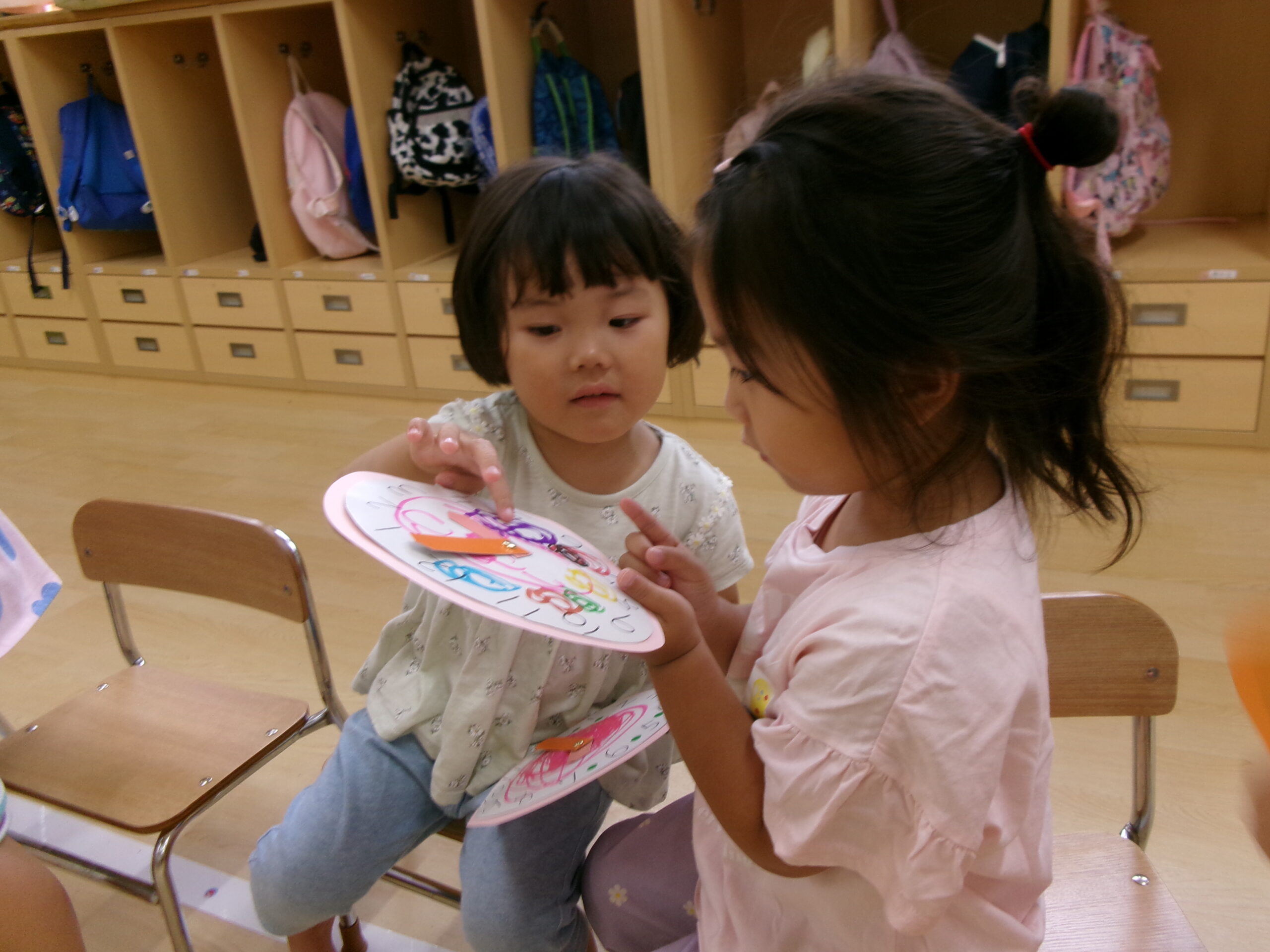 たんぽぽ組になって、時計を見ることが少しずつ増えている子ども達。