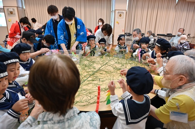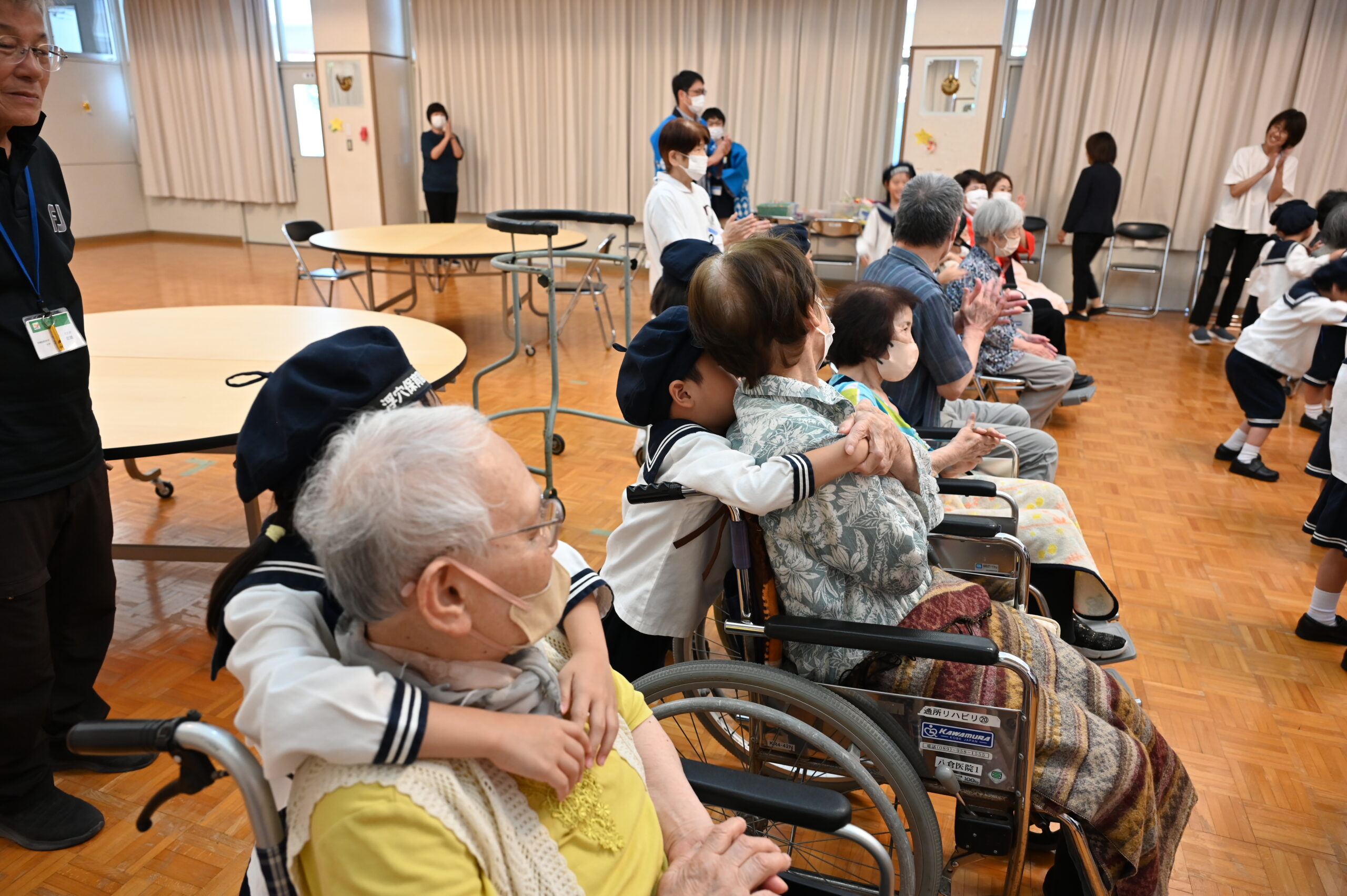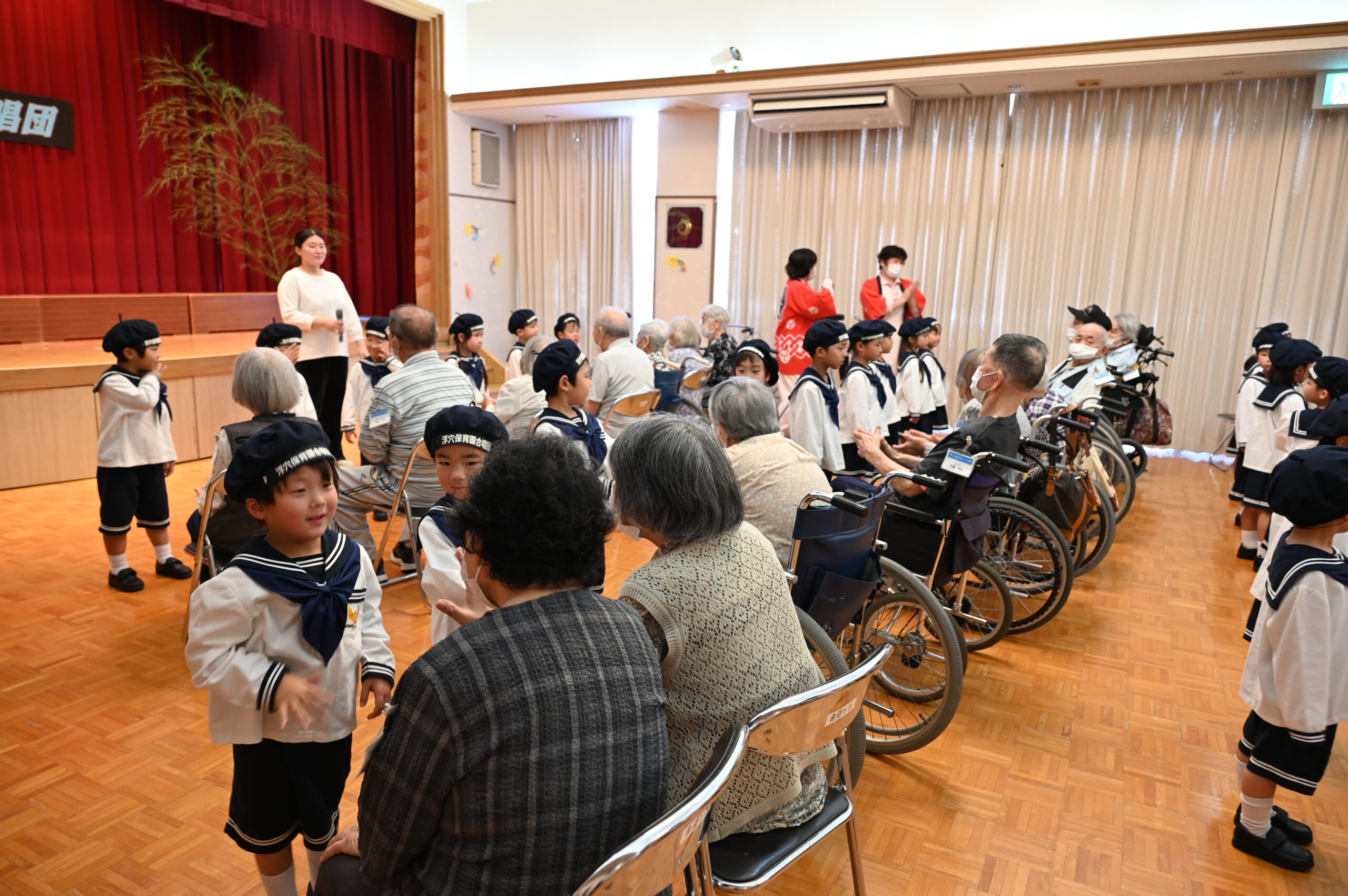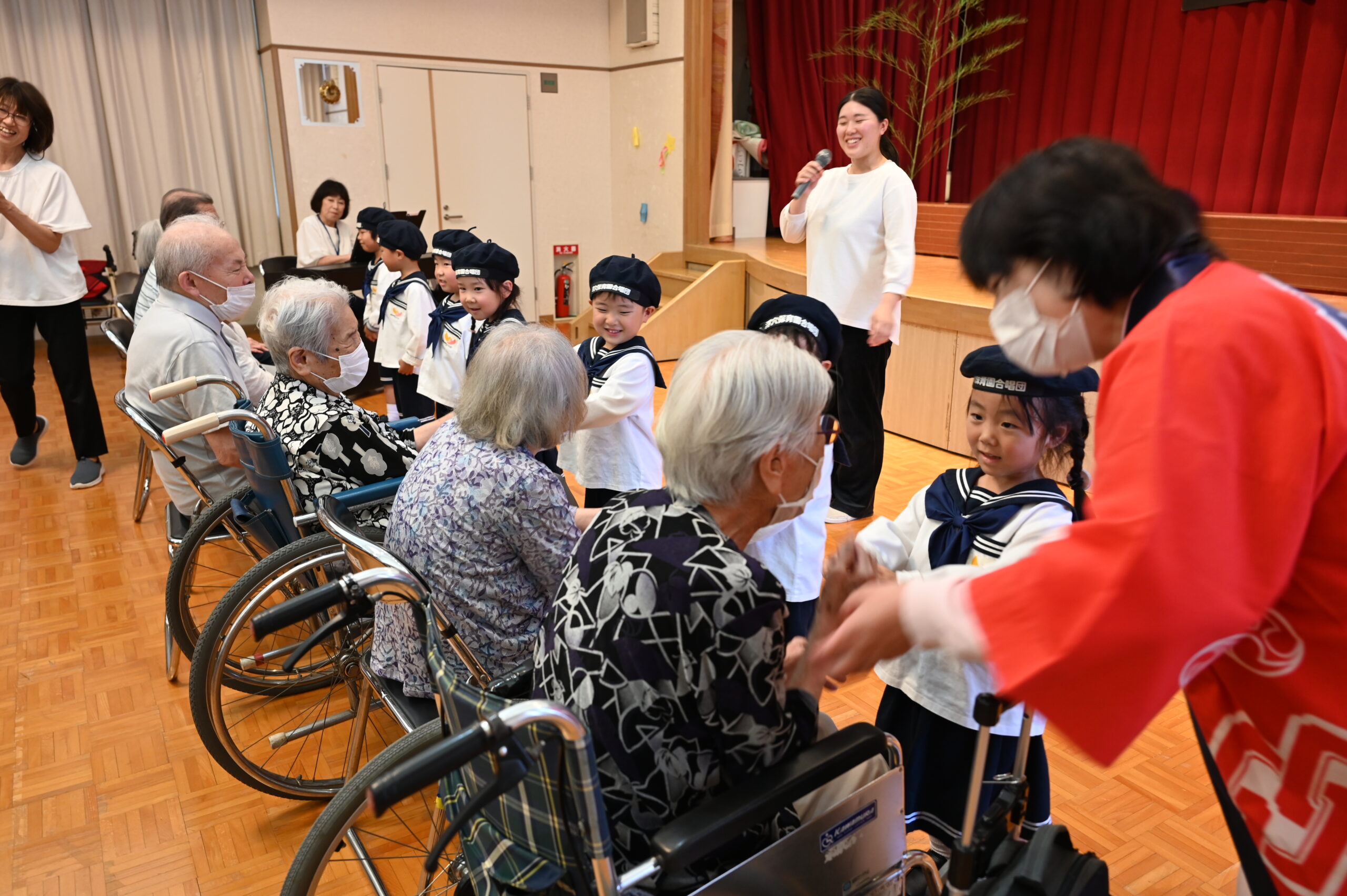 7月7日の午後から、八倉医院のデイサービス利用者さんと七夕交流を行いました。アトム少年少女合唱として『手のひらを太陽に』と『ふるさと』を歌った後、ふれあい遊びをしました。『しあわせなら手をたたこう』と『肩たたき』の曲でトントンと手を合わせたり、優しく肩たたきをする等して、利用者さんもみんな笑顔で楽しんでいました。