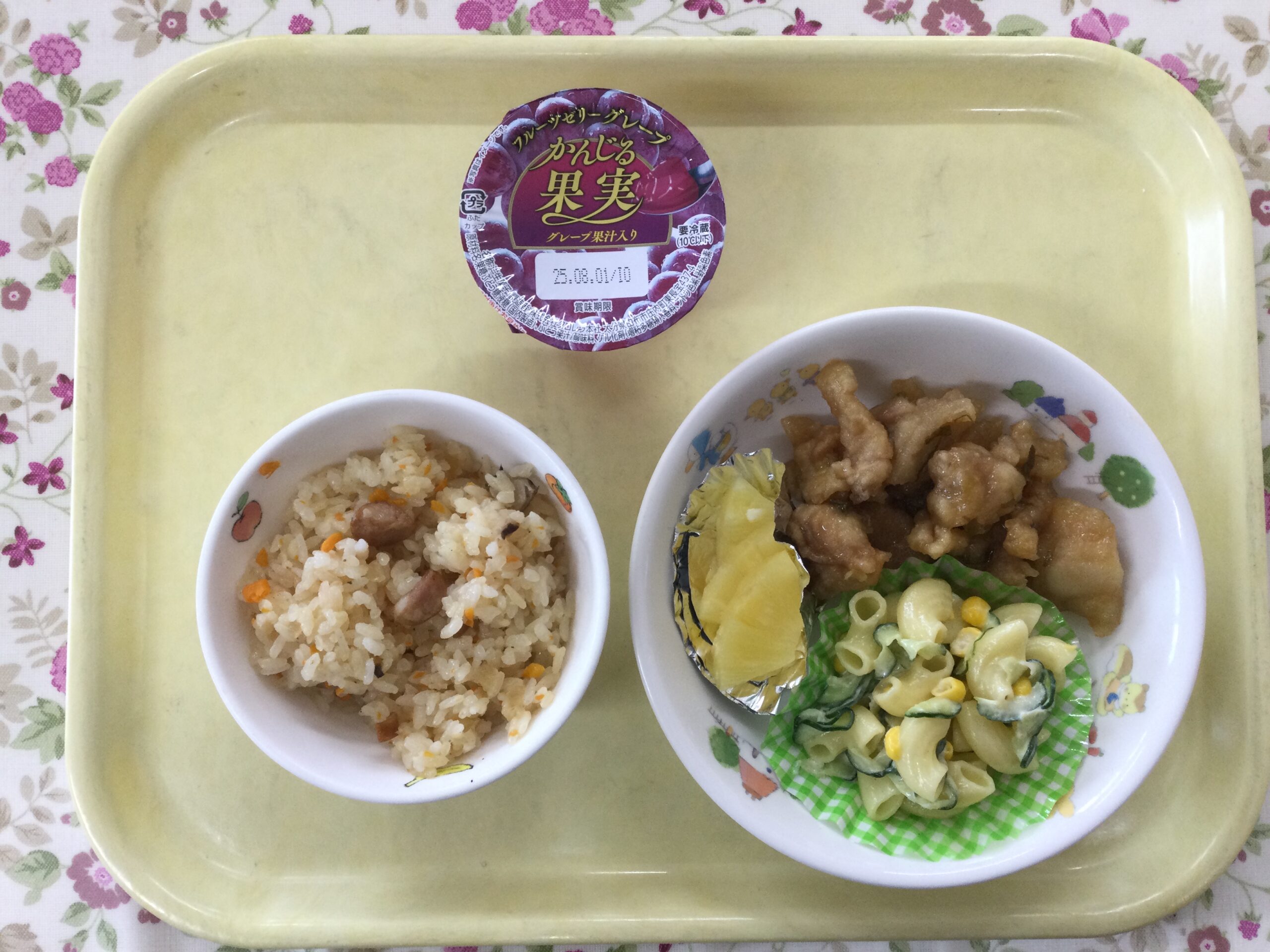 給食 食材は、地産地消、国産のものを心がけております。だしは、化学調味料を使用しないで、いりこ、かつおぶし、昆布からとっています。素材を第一にした優しい味付けの給食です。 ホーム 給食 7月18日(金)の給食 給食 7月18日(金)の給食 2025年7月18日[金曜日] ★今日の給食★ 炒飯、油淋鶏、マカロニサラダ、パイン缶 ☆今日のおやつ☆ フルーツゼリー 前の記事 お知らせ一覧 次の記事 カテゴリ カテゴリーを選択 クラススナップ トピックス アトム少年少女合唱団 給食 よくあるご質問 ちゅうりっぷ組 ばら組 もも組 たんぽぽ組 ひまわり組 ゆり組 今月の行事 各種ダウンロード アーカイブ 月を選択 2026年1月 (18) 2025年12月 (32) 2025年11月 (26) 2025年10月 (34) 2025年9月 (32) 2025年8月 (34) 2025年7月 (36) 2025年6月 (35) 2025年5月 (33) 2025年4月 (37) 2025年3月 (32) 2025年2月 (31) 2025年1月 (34) 2024年12月 (36) 2024年11月 (35) 2024年10月 (37) 2024年9月 (33) 2024年8月 (34) 2024年7月 (38) 2024年6月 (36) 2024年5月 (37) 2024年4月 (37) 2024年3月 (32) 2024年2月 (28) 2024年1月 (34) 2023年12月 (35) 2023年11月 (33) 2023年10月 (35) 2023年9月 (32) 2023年8月 (43) 2023年7月 (40) 2023年6月 (44) 2023年5月 (46) 2023年4月 (37) 2023年3月 (49) 2023年2月 (39) 2023年1月 (35) 2022年12月 (29) 2022年11月 (10) 2022年10月 (3) 2022年9月 (7) 2022年8月 (4) 2022年7月 (8) 2022年6月 (10) 2022年5月 (9) 2022年4月 (9) 2022年3月 (1) 2019年7月 (1) 2018年4月 (1) 2015年12月 (1) 2015年11月 (2) 2015年5月 (1)