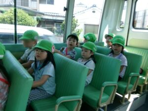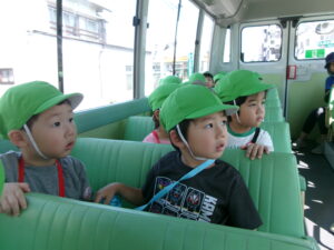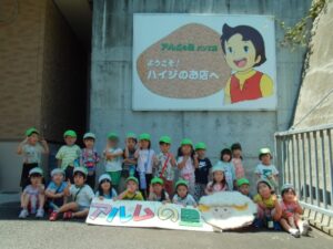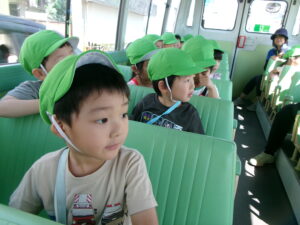 アルムの里へキーホルダー作りに出かけました。前日から『バスに乗れる‼』と楽しみにしていた子ども達。バスの中での約束事を聞いたり、羊のクイズや『メリーさんのひつじ』の歌を歌ったりと楽しみながらアルムの里へ行きました。