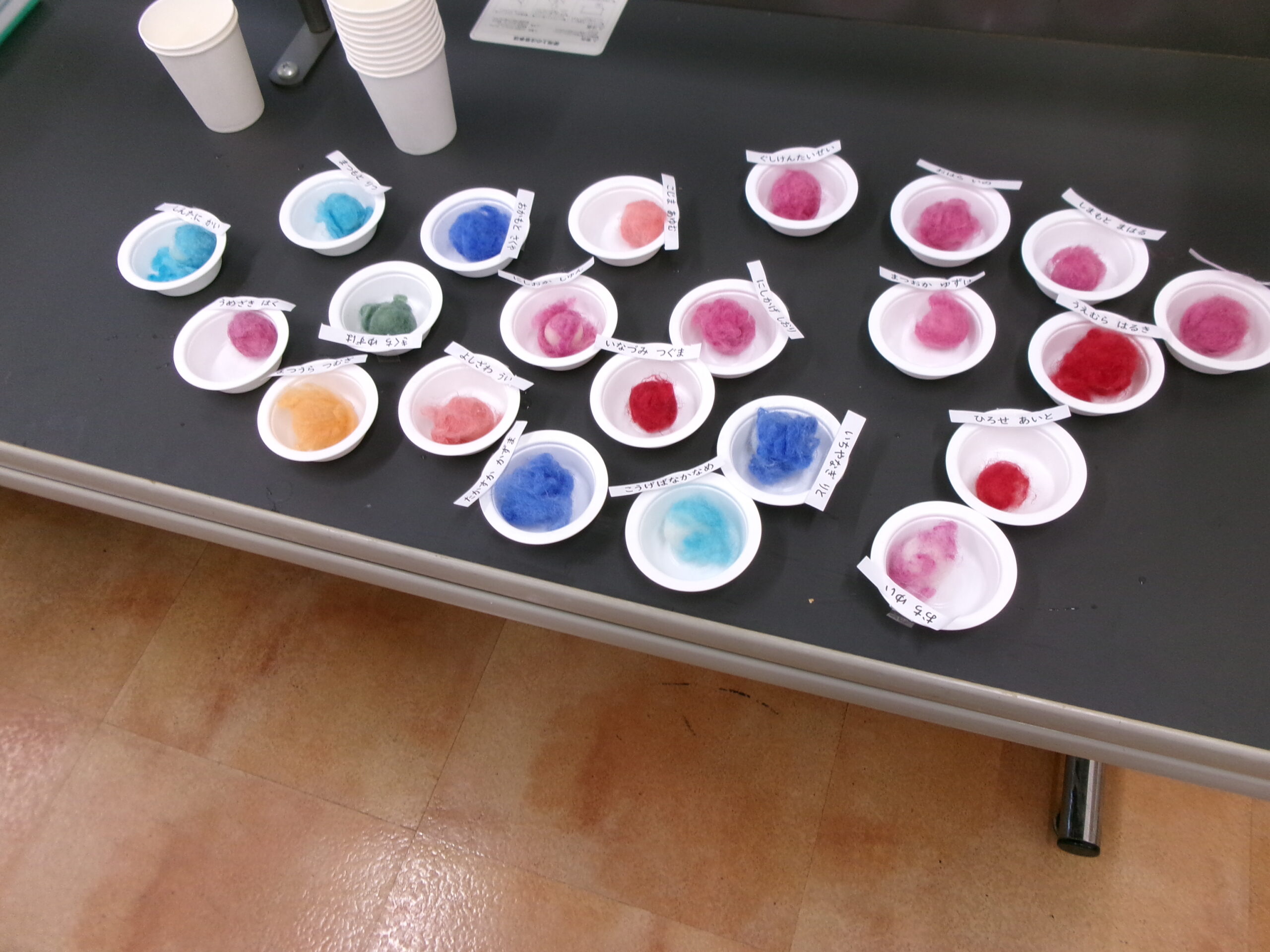 キーホルダー作りでは、なかなか羊毛がくっつかなくて苦戦!施設の方に手伝ってもらいながら「くっつけ!くっつけ‼」と想いを込めて丸めていきました。丸め終わると「見て。」と嬉しそうに見せてくれました。