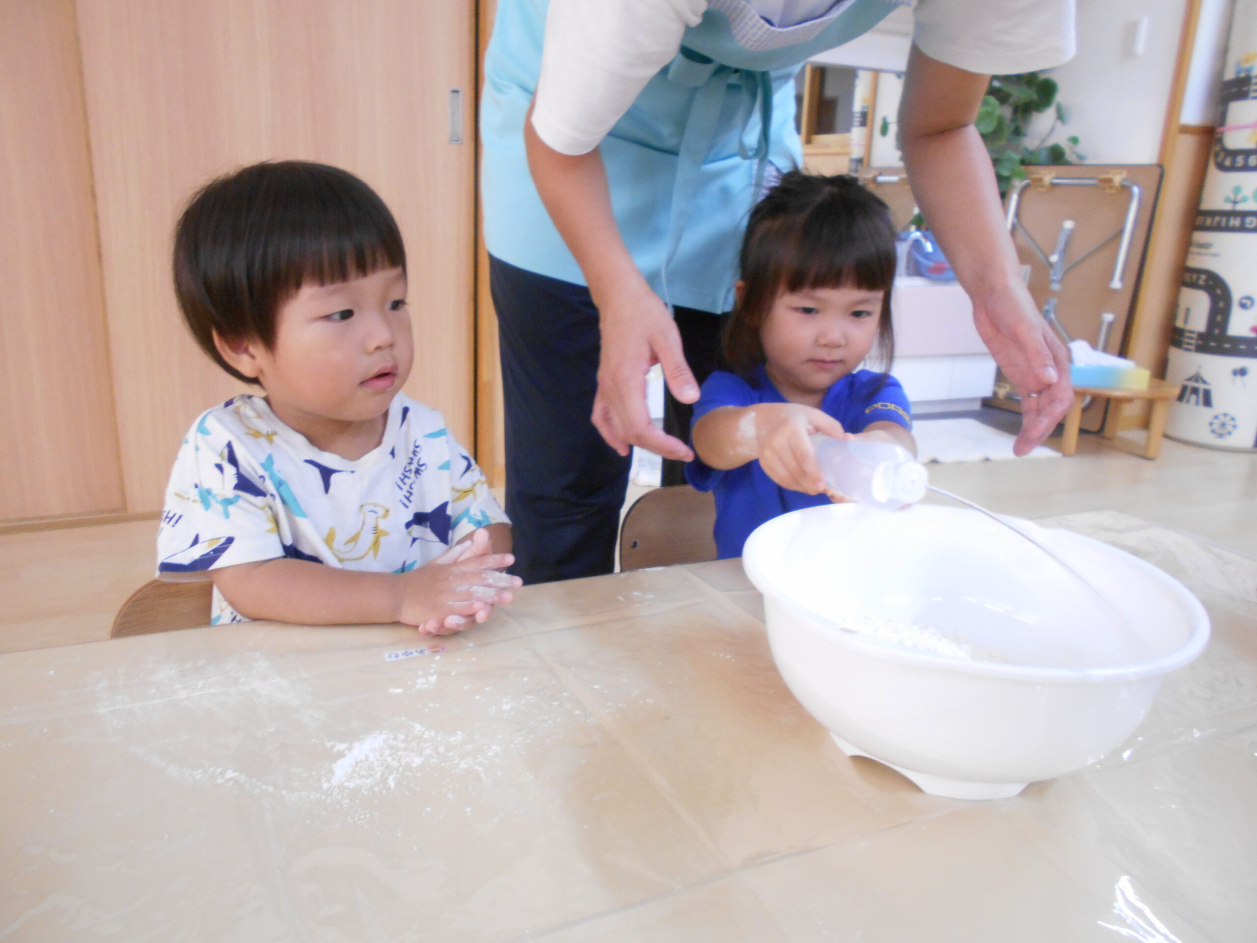クラススナップ ホーム クラススナップ もも組 感触遊び もも組 粉に水を加えながら、粉・水・お団子・絵の具など、色々な感触を楽しむ事ができました。『コネコネ…』たくさん遊んだ後は、丸めてカップに入れて、アイスクリームの完成です。出来上がったアイスクリームを並べて『アイスクリームの歌』を歌うと、とても嬉しそうでした。 前の記事 お知らせ一覧 次の記事 カテゴリ カテゴリーを選択 クラススナップ トピックス アトム少年少女合唱団 給食 よくあるご質問 ちゅうりっぷ組 ばら組 もも組 たんぽぽ組 ひまわり組 ゆり組 今月の行事 各種ダウンロード アーカイブ 月を選択 2026年1月 (18) 2025年12月 (32) 2025年11月 (26) 2025年10月 (34) 2025年9月 (32) 2025年8月 (34) 2025年7月 (36) 2025年6月 (35) 2025年5月 (33) 2025年4月 (37) 2025年3月 (32) 2025年2月 (31) 2025年1月 (34) 2024年12月 (36) 2024年11月 (35) 2024年10月 (37) 2024年9月 (33) 2024年8月 (34) 2024年7月 (38) 2024年6月 (36) 2024年5月 (37) 2024年4月 (37) 2024年3月 (32) 2024年2月 (28) 2024年1月 (34) 2023年12月 (35) 2023年11月 (33) 2023年10月 (35) 2023年9月 (32) 2023年8月 (43) 2023年7月 (40) 2023年6月 (44) 2023年5月 (46) 2023年4月 (37) 2023年3月 (49) 2023年2月 (39) 2023年1月 (35) 2022年12月 (29) 2022年11月 (10) 2022年10月 (3) 2022年9月 (7) 2022年8月 (4) 2022年7月 (8) 2022年6月 (10) 2022年5月 (9) 2022年4月 (9) 2022年3月 (1) 2019年7月 (1) 2018年4月 (1) 2015年12月 (1) 2015年11月 (2) 2015年5月 (1)