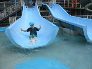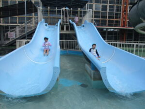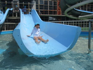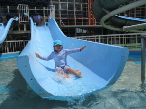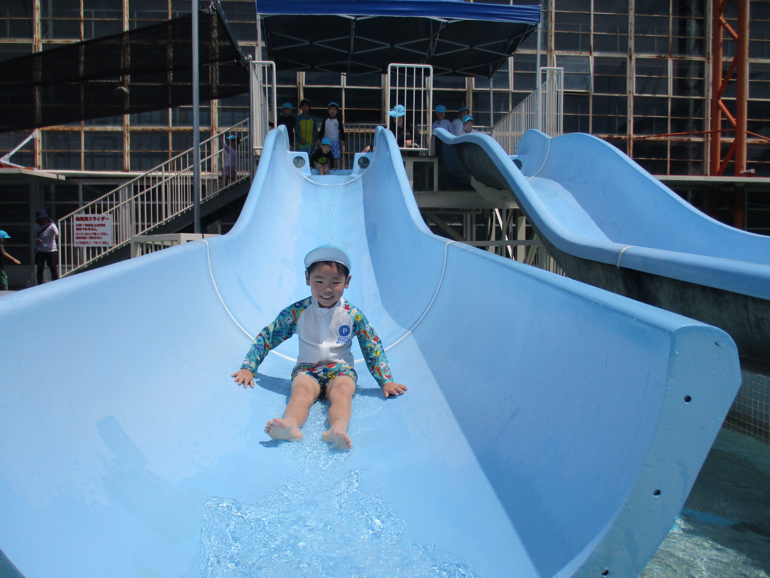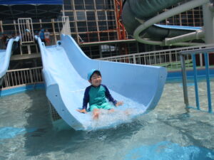 ビーチボールを使ったゲームを楽しんだ後は、お待ちかねのウォータースライダーへ『レッツゴー‼』