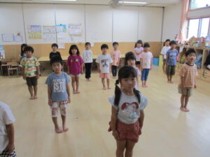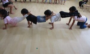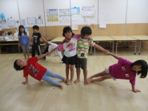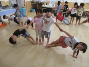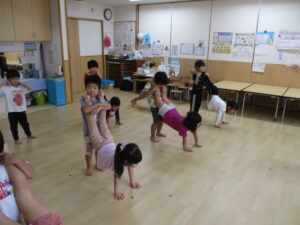 保育園最後の運動会に向けて、元気いっぱい頑張っています。今まで憧れの気持ちで見て来た組体操。『今年は自分達がやるんだ!』と練習を始めた初日から、気持ちは十分です。2人組、4人組、8人組、、、それぞれに難しい所もありますが、気持ちを合わせ協力すると完成することを経験し、また大きく成長できると信じています!