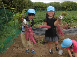 今回収穫したさつま芋は、11月の焼いもパーティーで使うので、みんなとても楽しみにしています。
